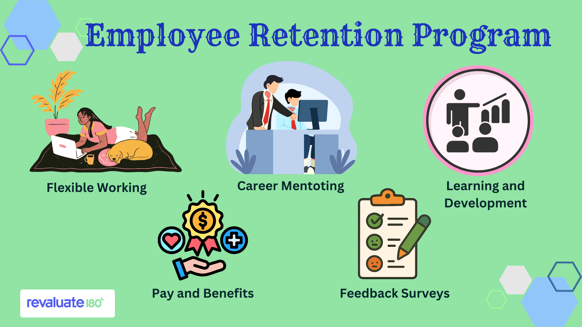 Retention programs or solutions help companies create strategies, policies, and initiatives to keep employees happy and content with their workplace, so that they do not consider leaving the company due to unresolved concerns.