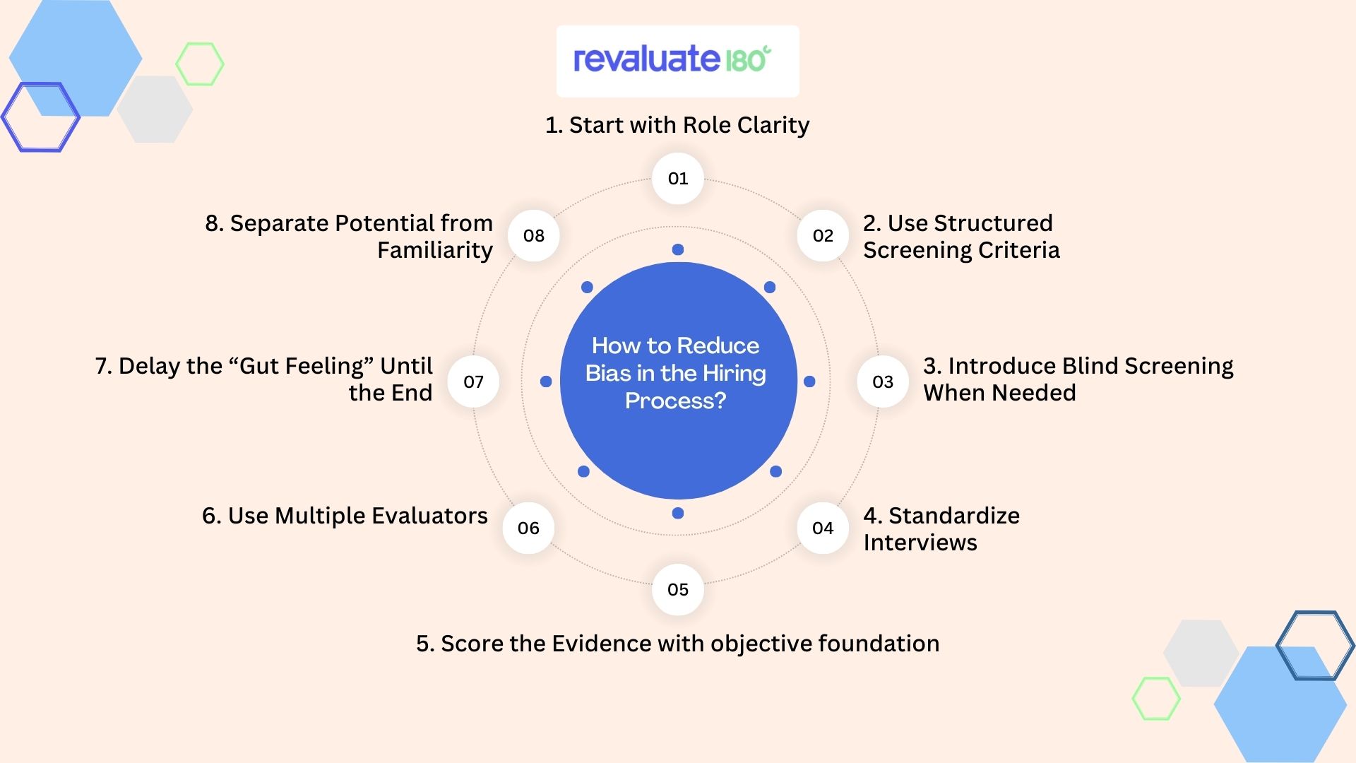 - Our eight proven strategies define roles clearly, use structured criteria, conduct blind resume screening, conduct structured interviews, use evidence-based scoring, involve diverse panels, and distinguish between true potential and familiarity.